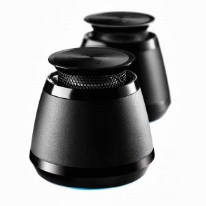 A portable speaker set aimed at portable gaming systems like the DS and the PSP; it'll work with just about any device with a headphone jack though, like MP3 and portable DVD players.